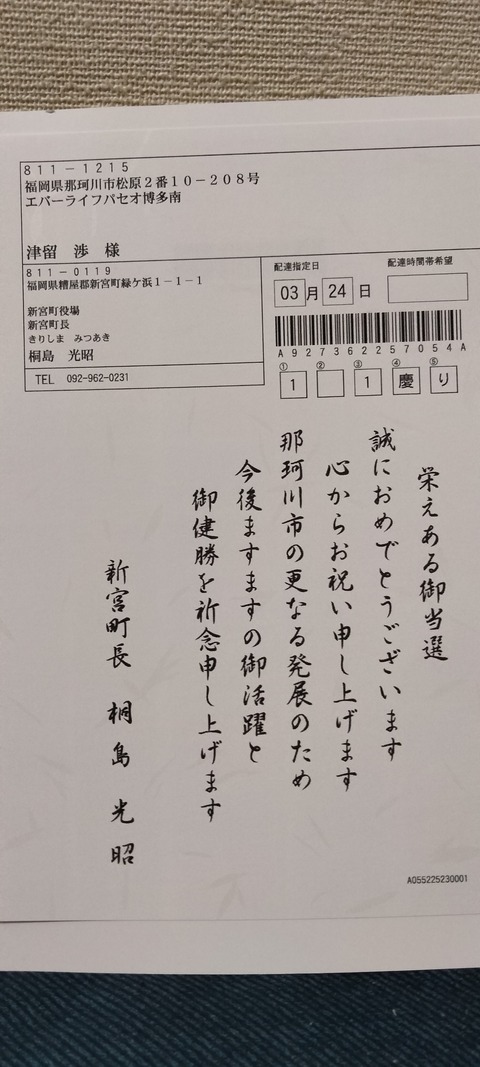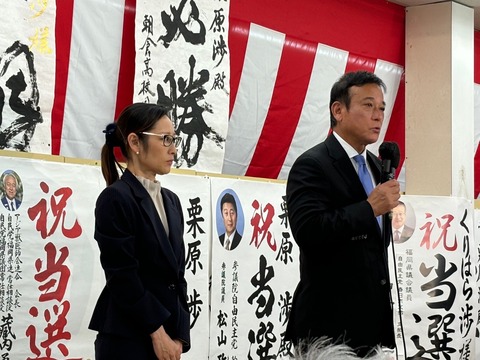 - 多くの皆様にご支援を賜り、おかげさまで当選させていただきました。心から厚く御礼申し上げます。